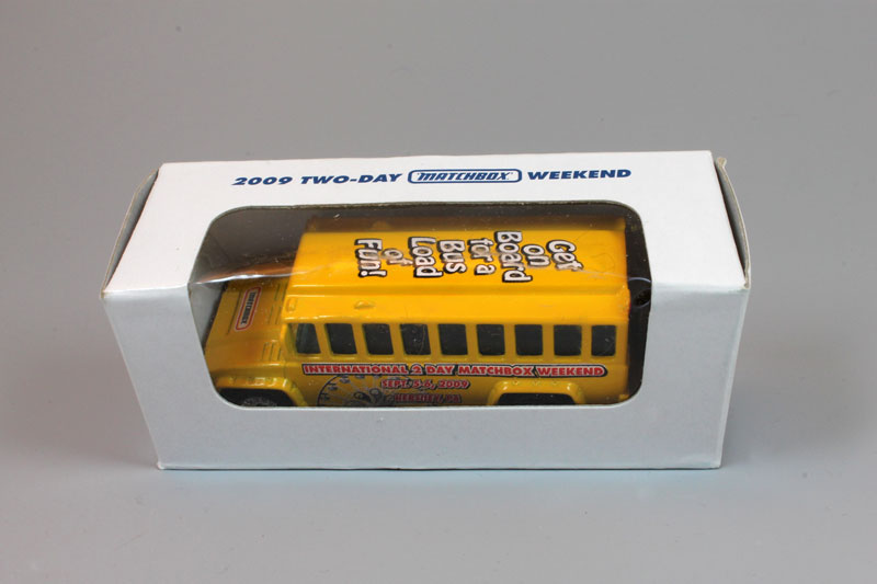 Design & Text: 2 Day Matchbox International; Hershey 2009; Bus Load of Fun