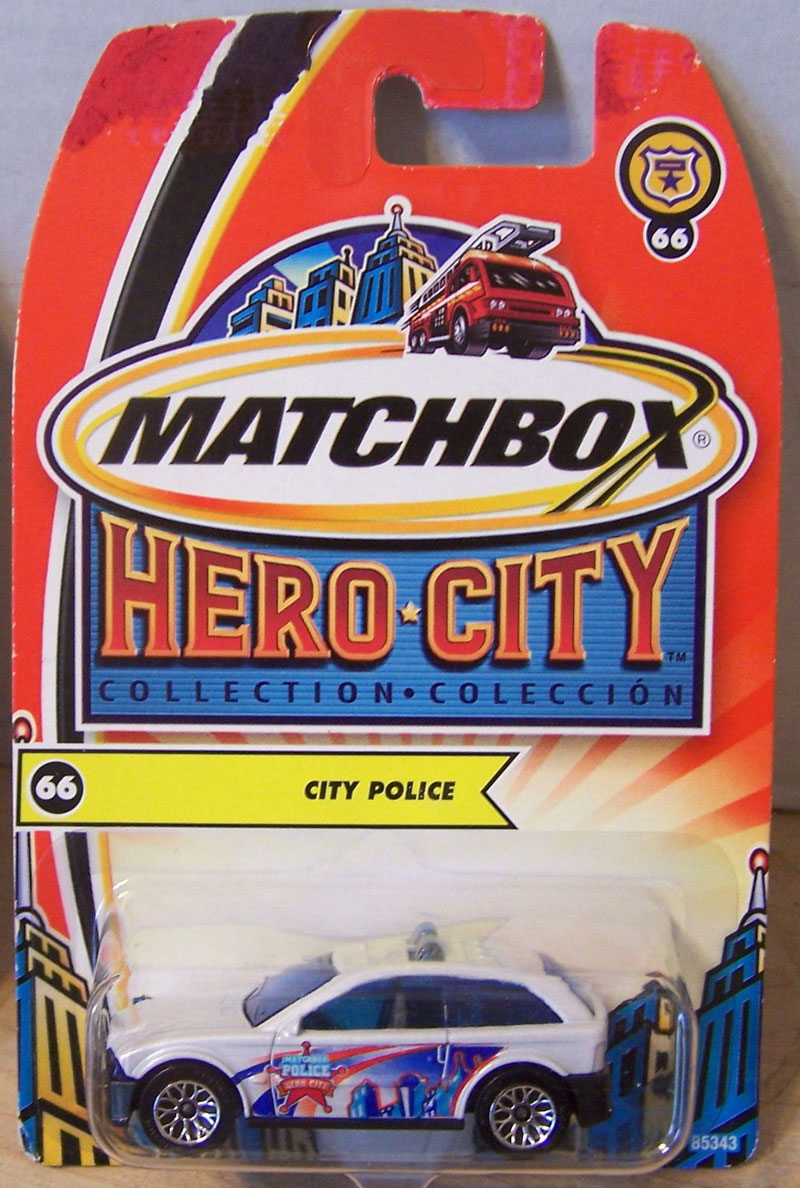 Design & Text: red/blu city design, Matchbox Police; Hero City