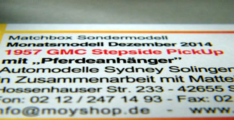 Name on Package: '57 GMC Stepside