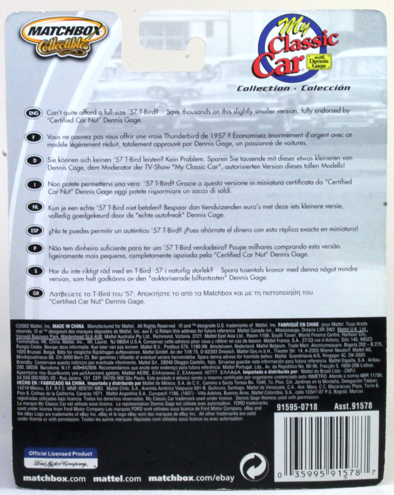 Model Name on the Pkg: 1957 Ford Thunderbird