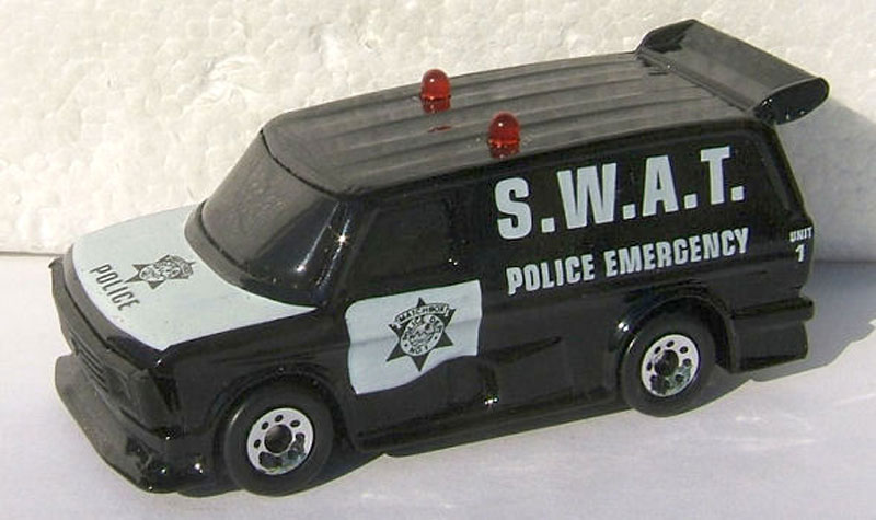 Text: S.W.A.T. Police Emergency / Matchbox Police Dept.
